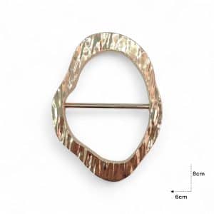 Características: Material: Metal resistente Acabado: Brillante Diseño: Forma irregular orgánica Incluye barra central para ajuste Ideal para bolsos, cinturones y accesorios